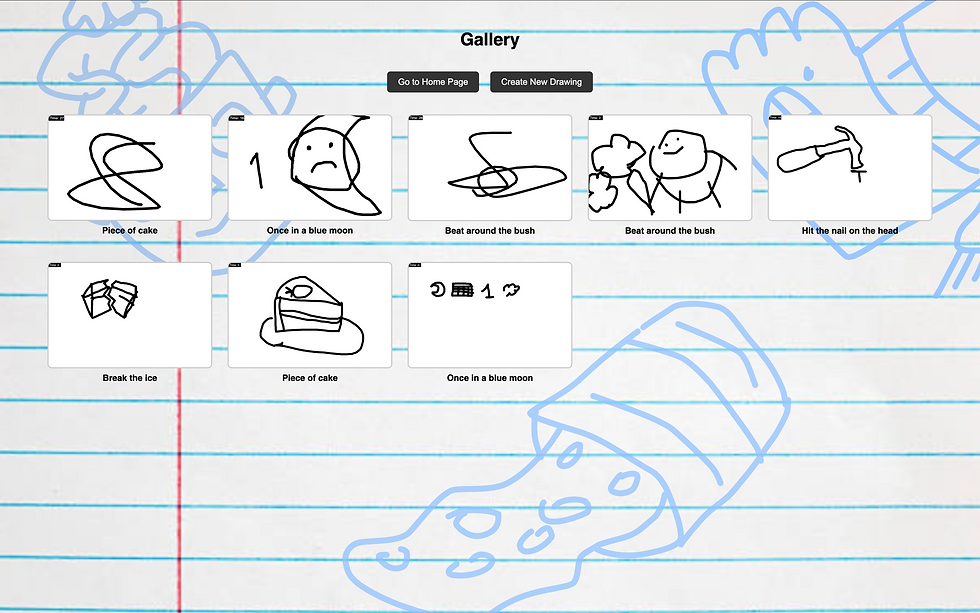 There were still problems like the landing page still being too messy, but I changed the focus to a gamified drawing app where you can watch the gallery (the database).